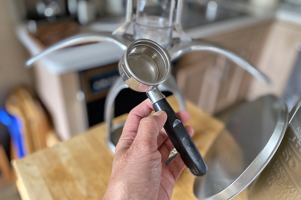Made from chrome-plated die-cast zinc and stainless steel, the portafilter basket is big enough to hold 16-20 grams of coffee, enough for a double espresso. The levers are geared to generate the 9-bar pressure for the perfect extraction. A splitter can be fitted to the bottom of the portafilter to make two single espressos.