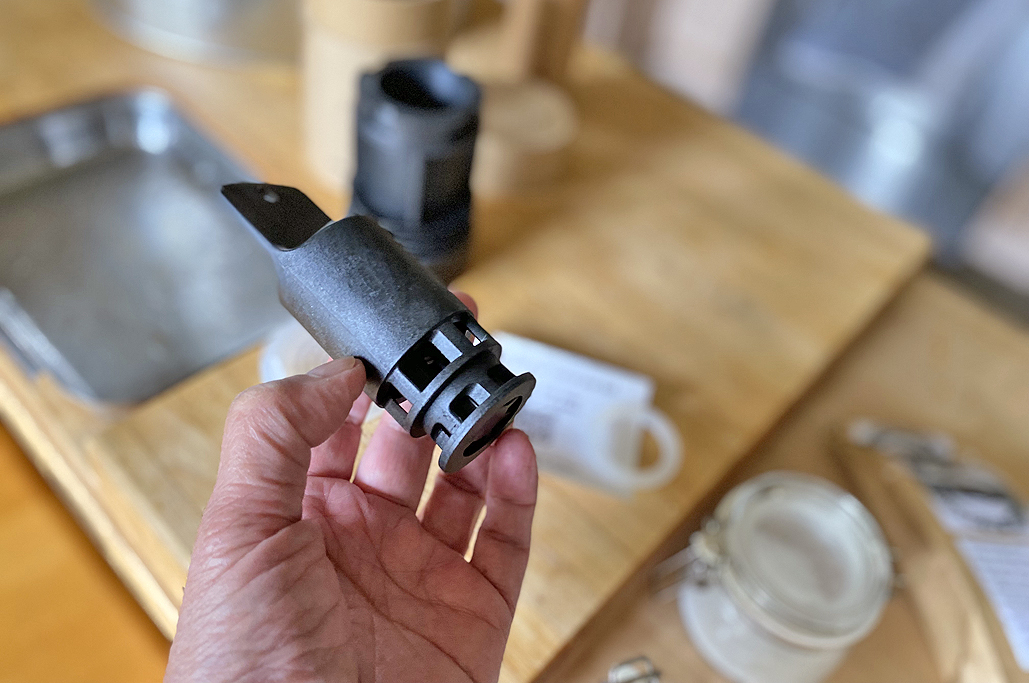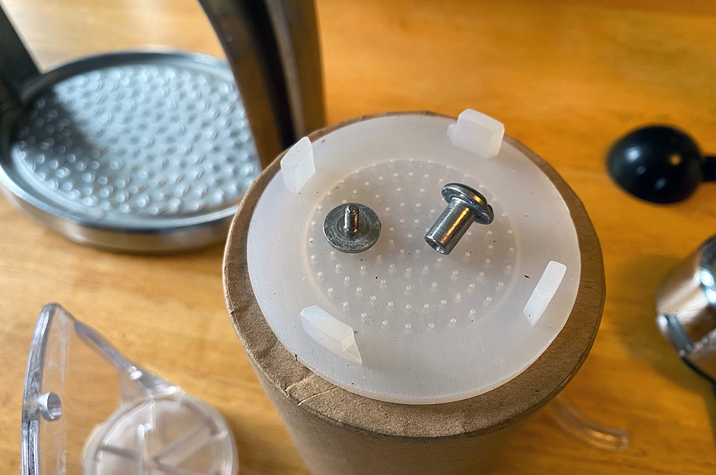 With the basket and old screen out, the installation of the new basket and screen was the next step. The basket clicked in easily, but fitting the silicone screen took more time. Getting the screen’s tabs into place was fiddly, but ultimately doable.