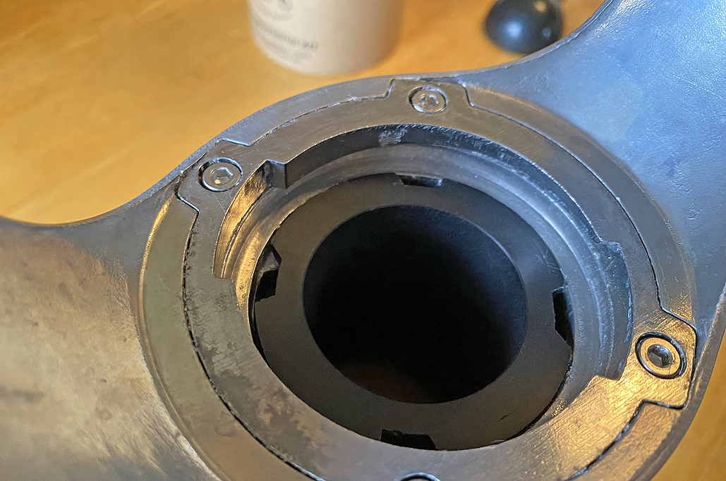We pushed the plunger down to reconnect the lever arms, but realized afterwards that it wasn’t necessary. It would have been easier to leave the plunger at the top and lift the arms instead.