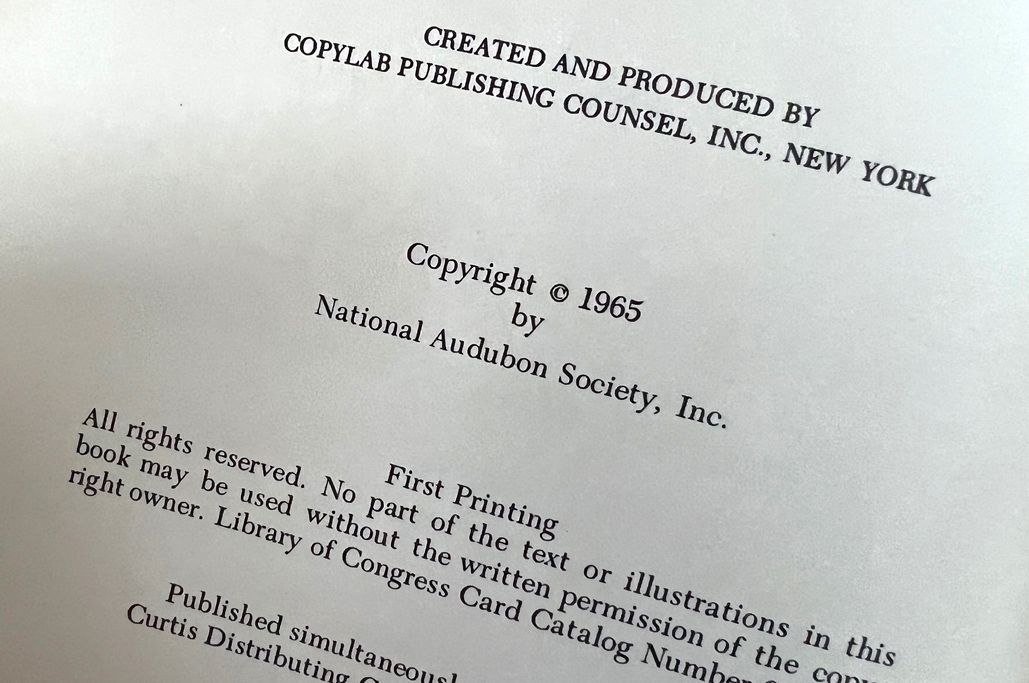 The Audubon Nature Encyclopedia, originally published in 1964–1965 by Curtis Books under the sponsorship of the National Audubon Society, contains roughly 2,392 pages and covers a wide array of topics, including flora, fauna, ecosystems, maps, and conservation.